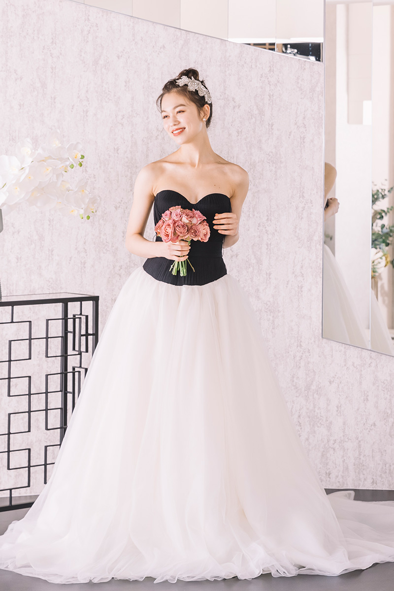We always have over 100 wedding dresses and colored dresses in stock. We also have a large lineup of popular imported brands. If you're interested in a dress, make an appointment to see it and try it on.